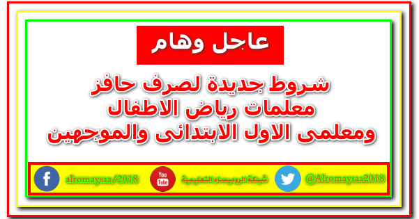 عاجل لمعلمات ومعلمي وموجهى الصف الأول الابتدائى ورياض اطفال صرف حافز ١٠٠٠ جنيه بدون شروط للجميع