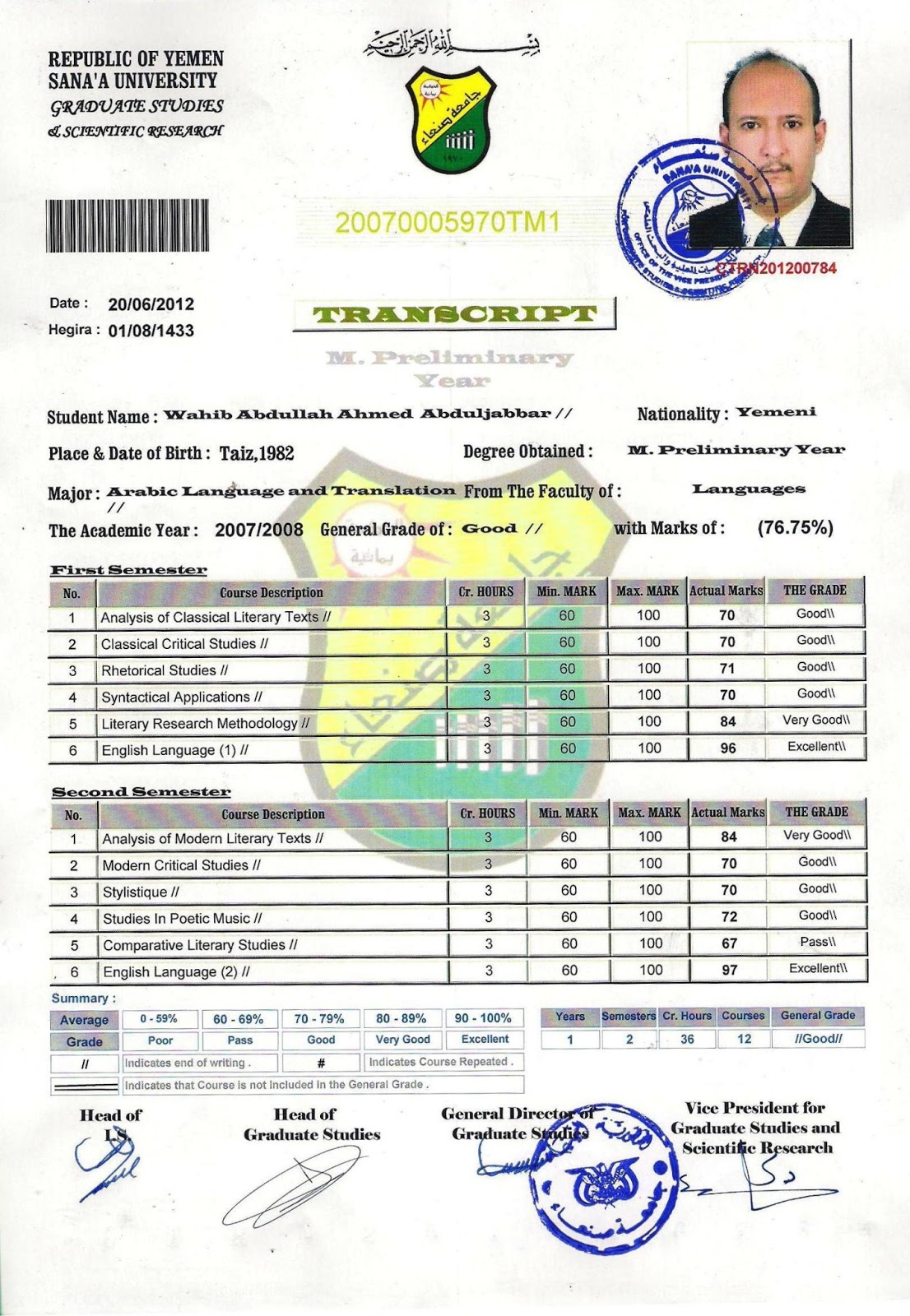 وهيب عبدالله أحمد الكلعي للترجمة جده 0569926424 شهادة التمهيدي لطالب الماجستير بقسم اللغة العربية والترجمة جامعة صنعاء وهيب عبدالله أحمد