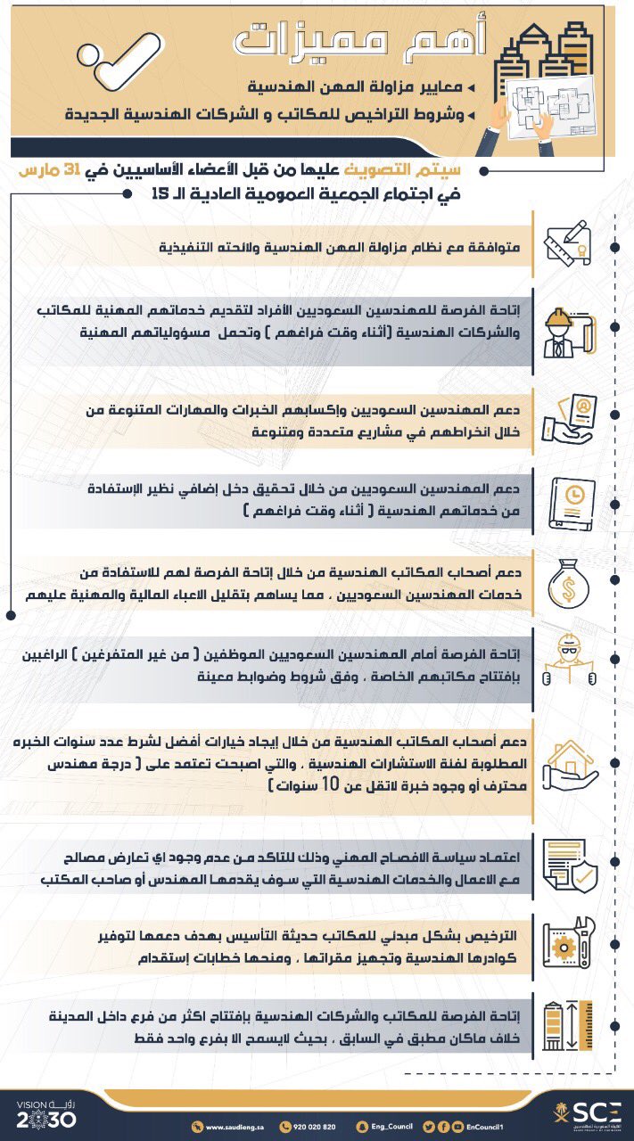 الهيئة السعودية للمهندسين Na Twitteru مسودة معايير مزاولة المهن الهندسية وشروط التراخيص للمكاتب والشركات الهندسية الجديدة سيتم التصويت عليها من قبل الأعضاء الأساسيين في 31 مارس في اجتماع الجمعية العمومية العادية