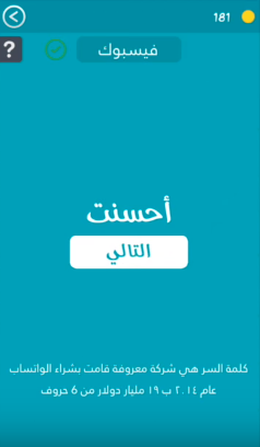 جواب هى شركة معروفة قامت بشراء الواتساب عام 2020 ب 19 مليار دولار من 6 حروف من لعبة كلمة السر 2 صقور الإبدآع