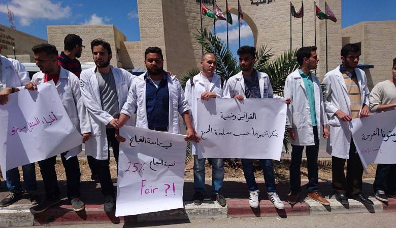 طلاب الطب في جامعة النجاح يواصلون وقفاتهم السلمية احتجاجا على قرارات الجامعة موقع رام الله الإخباري