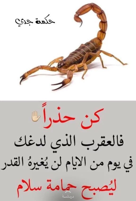 كن حذرآ فالعقرب الذي لدغك في يوم من الأيام لن يغيره القدر ليصبح حمامة السلام Tweet Added By إشراقة امل Download Photo Twaku
