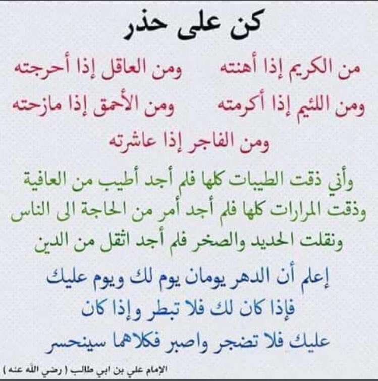 الــــــــــــغلا בטוויטר حكمة اليوم كن حذرا من خمس من الكريم إذا أهنته ومن العاقل إذا جرحته ومن اللئيم إذا أكرمته ومن الأحمق إذا مازحته ومن الفاجر إذا عاشرته
